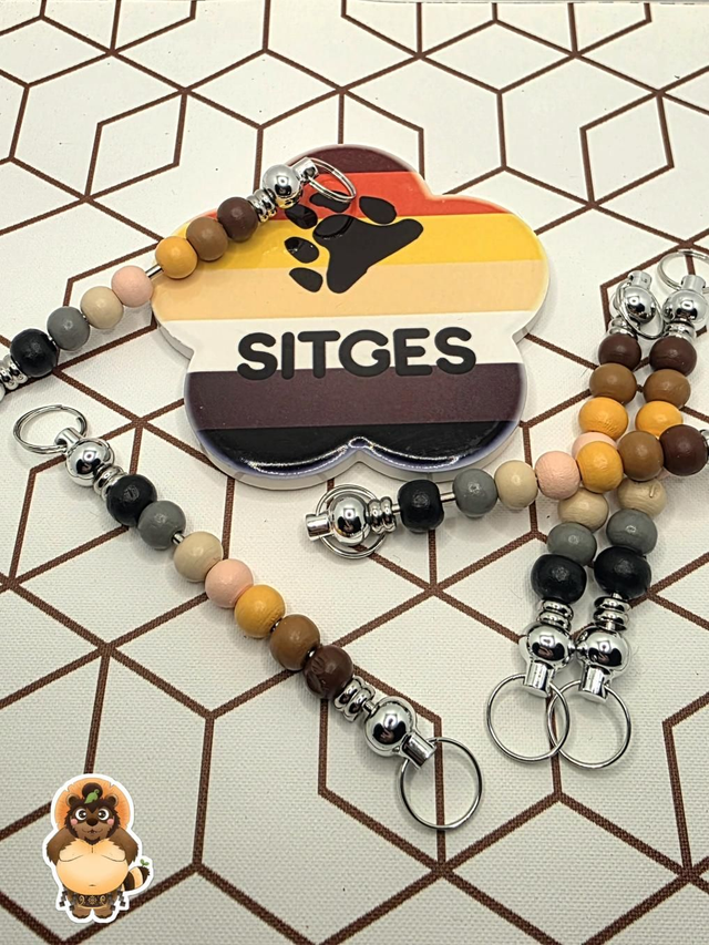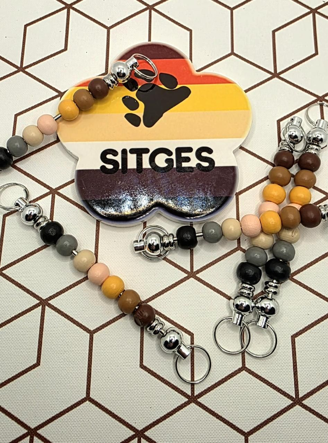 Porte-clé en métal et 8 perles de 8mm en bois de hêtre aux couleurs du drapeau ours !